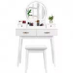 No more cluttered countertops! This vanity is equipped with two small drawers perfect for storing jewelry and makeup essentials, and a large drawer for bigger items like cosmetics bags and skin care products. The thoughtful design makes it easy to keep your space tidy and organized.