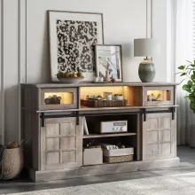 This entertainment center is more than just a TV stand—it's an immersive experience. The built-in electric fireplace offers a cozy, inviting glow without the mess or danger of a traditional fireplace. The RGB lighting not only highlights your space but also syncs with your music to create dynamic, party-like atmospheres or soft, romantic settings. Designed for both practicality and allure, this TV stand brings warmth and style to any home décor.