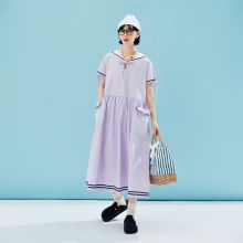 Use our battle tested marketing materials for Summer Striped Cotton Mid-Length Dress with Sailor Collar and Pockets