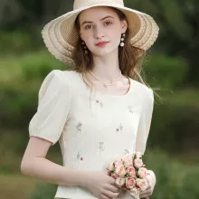 Use our battle tested marketing materials for Women's French Square Neck Embroidery Puff T-shirt