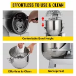 - Premium Quality & Large Capacity: Crafted from food-grade stainless steel, this mixer ensures hygienic standards and durability. The 10/15/20/30L bowl capacity allows you to mix large quantities of dough or batter at once, perfect for commercial kitchens and bakeries.