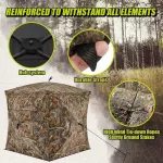 - Camouflage Design: Stay concealed with the tent’s natural camouflage pattern, ideal for blending into woodland environments during hunting expeditions.