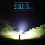 Meet the ultimate lighting tool for professionals and enthusiasts alike—the 200,000 Lumen High Power Searchlight. Designed to redefine brightness and performance standards, this flashlight is engineered to illuminate the darkest environments with an astounding 200,000 lumens. With a beam distance reaching up to 1618 meters, this searchlight is equivalent to over 100 car headlights, making it an indispensable tool for exploration, search and rescue operations, and outdoor adventures.