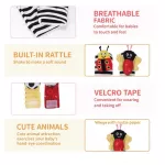 Our plush rattle set stands out with its high-quality materials and child-friendly design. Made from soft PP cotton, it's gentle on baby's skin and durable enough for daily play. The set includes a pair of wrist rattles and socks, each adorned with cute animal figures that capture your child’s attention. The contrasting black and white patterns are not just charming – they help enhance visual development.