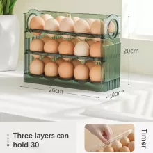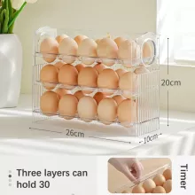 Transform your kitchen organization with the Auto Flip Egg Organizer, a 3-tier holder designed to store up to 30 eggs. Crafted from durable, food-grade PET material, this egg holder ensures your eggs stay safe, fresh, and easily accessible. Perfect for the refrigerator side door or countertop, this egg container is the ultimate solution for efficient and tidy egg storage.