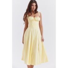 Whether you're attending a summer wedding, a garden party, or a chic city brunch, this dress is the perfect choice. Its timeless design ensures you'll look effortlessly stylish, while the vibrant yellow color adds a pop of sunshine to your outfit. Pair it with your favorite sandals or heels for a complete look.