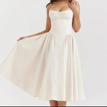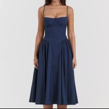 Embrace Summer Elegance with Our Spaghetti Strap A-line Midi Dress