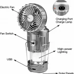 - Rechargeable: Solar-powered fan with USB output for charging mobile phones and low-power USB night lights