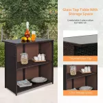 Elevate your patio, backyard, balcony, or garden with the perfect blend of style and functionality with our 3-Piece Wicker Patio Bar Set. This exquisite outdoor furniture set includes two comfortable bar stools and a chic tempered glass bar table, designed to enhance your outdoor living experience. Imagine hosting intimate gatherings or enjoying a serene morning coffee while basking in the fresh air—this set is the ideal addition to any outdoor setting.