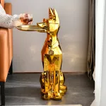 The Doberman Dog Floor Statue stands at an impressive 30in tall, with dimensions of 12in by 15in. Available in a range of vibrant colors including gold, silver, green, blue, and red, this statue complements various decor styles and color schemes. The semi-handmade production process ensures each piece boasts smooth lines and a bright, eye-catching texture, making it a standout addition to any room.