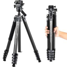 What sets our tripod apart is its combination of lightweight design and professional-grade features. The carbon fiber construction not only makes it incredibly strong but also remarkably light, so you can carry it with you without feeling weighed down. The panoramic ball head is designed for smooth, precise movement, giving you the freedom to capture the perfect shot from any angle.