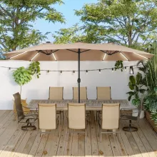 - Double-Sided Design: The 15 ft umbrella boasts a double-sided sun canopy, creating a 133 ft² shaded area, perfect for accommodating multiple people comfortably.