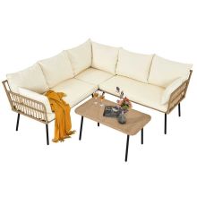 Elevate your backyard into a cozy, inviting retreat with our 4-Piece Patio Furniture Set. This stunning outdoor rattan woven sectional sofa offers luxurious comfort and ample seating for family and friends. Whether you’re hosting a summer barbecue, enjoying a quiet evening under the stars, or watching a family movie night, this versatile set adapts to your every need.