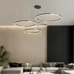 Transform your living space with the Modern LED Chandelier Brushed Rings Ceiling Light, designed to bring a touch of elegance and contemporary style to any room. This stunning chandelier features a unique blend of gold and coffee colors, creating a sophisticated look that complements various interior designs. Made from high-quality acrylic, aluminum alloy, and metal, this chandelier promises durability and a sleek, modern aesthetic.