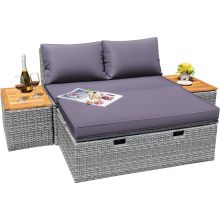 Elevate your outdoor living with our Multifunctional Outdoor Sectional Sofa, a perfect blend of style, comfort, and functionality. Designed to enhance your patio, garden, or backyard, this 4-piece set offers everything you need for a cozy and stylish outdoor retreat. Featuring durable rattan and wicker construction, this set includes a versatile sectional sofa, a practical coffee table, and two convenient deck boxes for storage. With its minimalist modern style and gray cushions, this outdoor furniture set is an ideal addition to any home.