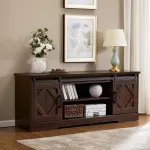 What sets this TV stand apart is its unique combination of rustic charm and modern design. The farmhouse barn-door style brings a warm, inviting feel to your living space, while the sturdy construction ensures long-lasting use. The ample storage options allow you to keep your media equipment organized and easily accessible. Plus, the cable management system helps maintain a clean, uncluttered look.