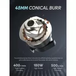 - Precise Grinding: Equipped with a 48mm conical burr for uniform grinding without overheating the coffee beans, preserving flavor and aroma.