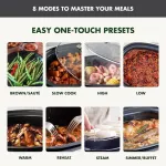 - Versatile Cooking Options: Comes with eight one-click presets including slow cooking, stir-frying, steaming, stewing, sautéing, baking, reheating, and keeping food warm.