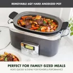 - Large Capacity: The spacious 6QT pot is ideal for large meals, capable of handling 5-6 pounds of pork shoulder or 8-10 chicken legs.