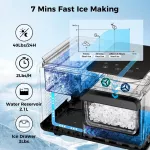 - High Capacity: Produces up to 40 pounds of ice per day, with the first batch ready in just 7 minutes and steady production of 2 pounds per hour.
