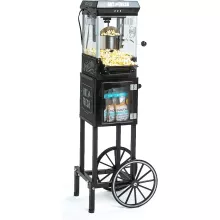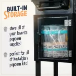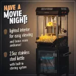 What sets this popcorn machine apart is its combination of vintage charm and modern functionality. The lighted interior creates an inviting glow, adding to the ambiance of your movie night. The sturdy cart not only adds to the vintage appeal but also provides mobility and storage for your popcorn supplies. The overall design is both practical and aesthetically pleasing, making it a centerpiece for any gathering.