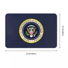 This versatile doormat is perfect for various applications around your home. Use it at your door to keep dirt and debris at bay, in your kitchen for a comfortable standing surface, or in your bedroom for a cozy touch. Its elegant design featuring the Presidential Seal adds a regal touch to any space.