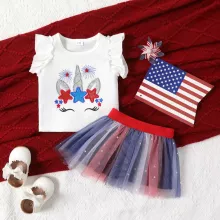 Use our battle tested marketing materials for Baby Girl Unicorn Flutter Sleeve Top and Mesh Skirt Set for Independence Day