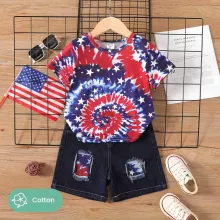 Use our battle tested marketing materials for 2pcs Toddler Boy Tie Dye Tee and Ripped Denim Shorts Set