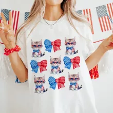 Use our battle tested marketing materials for Women's Retro 4th of July Cat Graphic Tee