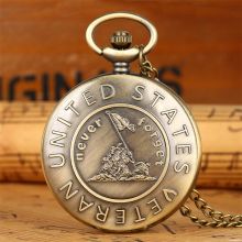 The Vintage Bronze "American Veteran" Pocket Watch Necklace stands out for its unique blend of fashion and historical significance. The intricate design on the watch case features a poignant tribute to American veterans, making it a meaningful accessory. Additionally, the watch's sturdy stainless steel construction ensures durability, while its quartz movement guarantees accuracy. This pocket watch is not just an accessory; it's a piece of history you can carry with you.