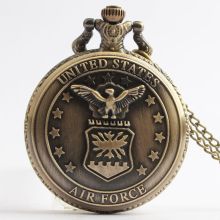 Retro Bronze Air Force Eagle Stars Quartz Antique Pocket Watch with Chain