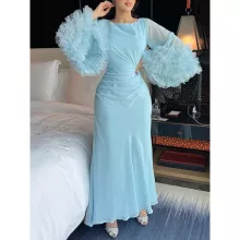 Step into the season of elegance with our Elegant Women's Maxi Dress with Flared Sleeves, a perfect blend of sophistication and style for any occasion. Designed for the modern woman, this dress is your go-to choice for parties, evening events, or a casual outing. Crafted from high-quality mesh fabric and polyester, it ensures both comfort and a flattering fit. The solid color design, combined with pleated waist detailing, creates a timeless look that enhances your natural beauty.