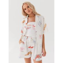 Elevate your summer wardrobe with our Women's 2-Piece Summer Set featuring a cute print short sleeve button shirt and elastic shorts. This trendy outfit is perfect for any occasion, whether you're heading to the beach, a party, or a casual day out. Made from a blend of 95% polyester and 5% elastane, this set offers both style and comfort, keeping you looking chic and feeling great all day long.