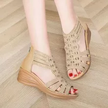 The Women's Crystal Wedge Sandals are crafted with comfort and fashion in mind. The wedge heel provides a comfortable lift, while the rhinestone embellishments add a luxurious touch. The open-toe design ensures breathability, making these sandals ideal for warm weather. The convenient zipper closure at the back allows for easy on and off, ensuring you can slip into these beauties effortlessly.