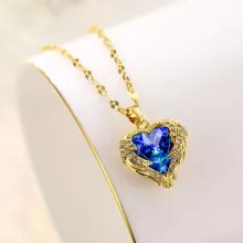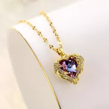This necklace is not just an accessory; it's a statement piece. The heart-shaped gemstone is meticulously crafted to catch the light, adding a sparkling accent to your ensemble. The titanium steel construction ensures that this necklace will withstand the test of time, retaining its golden luster and intricate detailing.