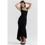 - Elegant Design: The backless and sleeveless design with spaghetti straps and a slash neckline exudes sophistication and charm.