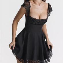 What sets this dress apart is its dedication to detail and quality. The non-stretch fabric emphasizes your natural curves, while the empire waistline enhances your silhouette. The delicate lace detailing adds a touch of romance, making it not just a dress, but a statement of style.
