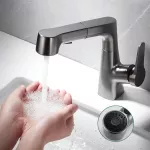 This contemporary faucet combines functionality with elegance, making it the perfect addition to any modern bathroom. Designed with a pull-out and rotating spout, it offers unmatched convenience for all your daily needs. Crafted from high-quality stainless steel, this faucet ensures durability and long-lasting performance.