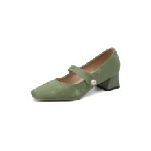 Use our battle tested marketing materials for Elegant Square Toe Mary Jane Pumps with Pearl Accent