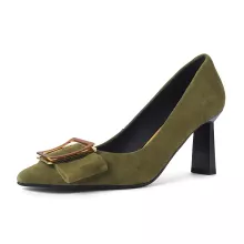 Use our battle tested marketing materials for Spring Pointed Toe Chunky Heel Pumps with Belt Buckle