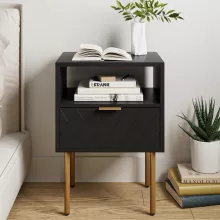 Use our battle tested marketing materials for Modern Black Nightstand with 2 Drawers and Gold Frame