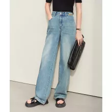 Use our battle tested marketing materials for Minimalist Retro Wide-Leg Jeans with Leather Plate Decoration