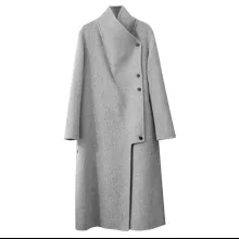 Use our battle tested marketing materials for Minimalist Woolen Coat for Women with Stand Collar and Slit