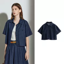 Use our battle tested marketing materials for Denim Blouse Shirt - Turn Down Collar Short Sleeve Streetwear Top