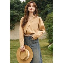Use our battle tested marketing materials for French Retro Turn-down Collar V Neck Long Sleeve Shirt for Women