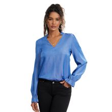 Use our battle tested marketing materials for Elegant V Neck Long Sleeve Frill Top for Office Ladies