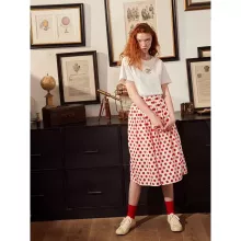 Use our battle tested marketing materials for Women's Polka Dot A-line Cotton Skirt with Elastic Waist and Button Decoration