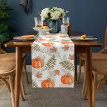 Use our battle tested marketing materials for Fall Harvest Pumpkin & Maple Leaf Linen Table Runner