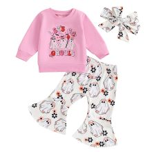 Use our battle tested marketing materials for Toddler Girls Halloween Long Sleeve Ghost Print Top and Floral Pants Set