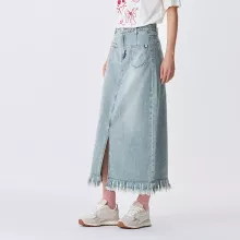 Use our battle tested marketing materials for Distressed Denim Skirt – Trendy Frayed Edge Slit Straight-Leg Skirt for Women